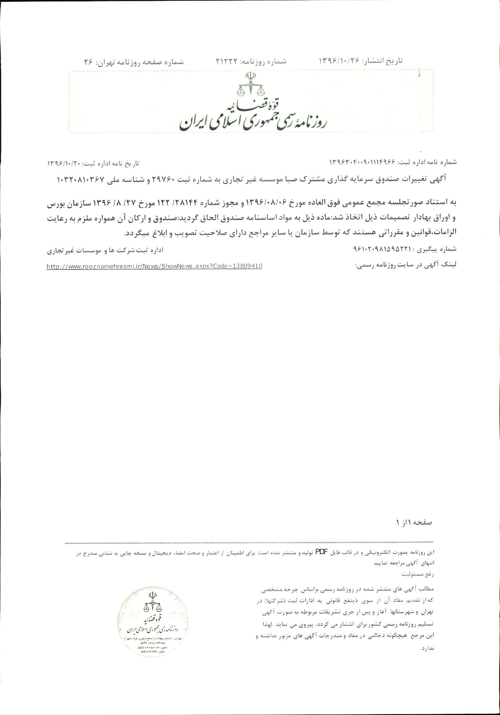 | شماره ثبت نزد مرجع ثبت شرکتها و موسسات غیرتجاری | ۲۹۷۶۰ |